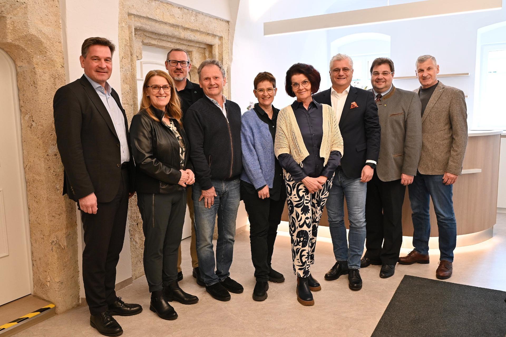 Am Zeller Hauptplatz im bestehenden MediZell hat am 1. April das neue Primärversorgungszentrum (PVZ) seinen Betrieb aufgenommen. Bereits im Vorfeld der Eröffnung verschafften sich Bürgermeister Werner Krammer, Landtagsabgeordneter und Vizebürgermeister Mario Wührer sowie Stadtrat Peter Engelbrechtsmüller gemeinsam mit Staatssekretärin Ulrike Königsberger-Ludwig, Landesrat Martin Antauer und dem Vorsitzenden des Landesstellenausschusses der ÖGK, Robert Leitner, einen Eindruck von den neuen Ordinationsräumlichkeiten.