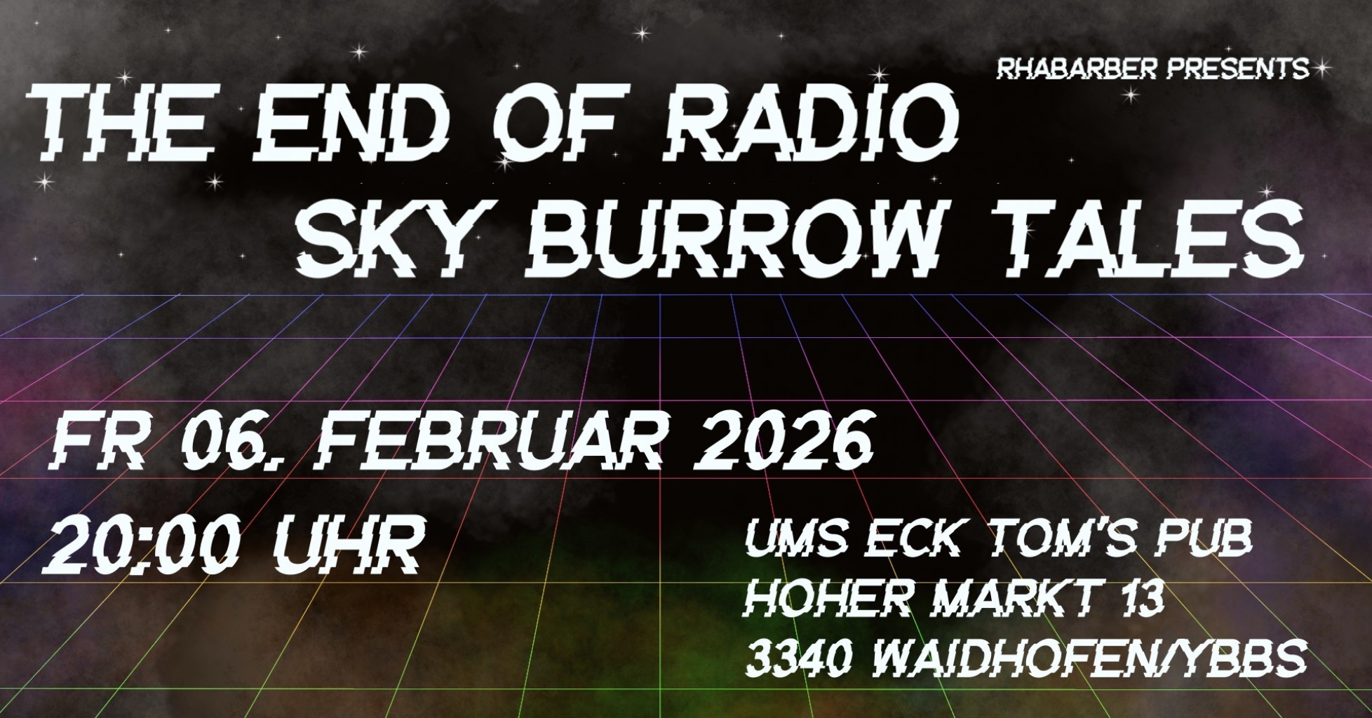 Sky Burrow Tales ist ein Musikprojekt aus Waidhofen/Ybbs in Niederösterreich. Seit ihrer Gründung im Sommer 2019 verbreiten sie ihre Vision von kosmischer Musik mittels Konzerten und einer Reihe von Veröffentlichungen. Ihre Musik speist sich aus einer Vielzahl unterschiedlicher Stile und Einflüsse, fusioniert in Songs, die sich in jedem Moment in wilde Jams auflösen können. Die spielerische Dynamik zwischen strukturierten Kompositionen und freien, instrumentalen Explorationen garantiert, dass keine zwei Konzerte der Gruppe einander gleichen.