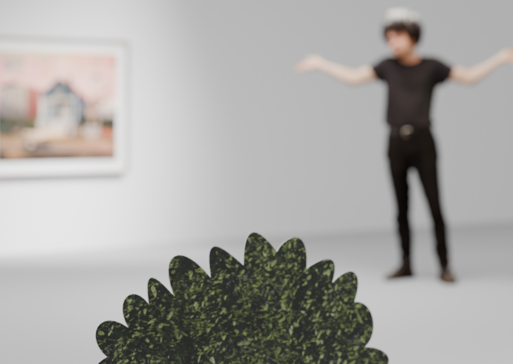 Neben Skulpturen zeigt die Ausstellung Renderings und Fotografien von Modellszenen aus Papier. Das Wechselspiel zwischen Echtheit und Fiktion wird verstärkt, indem Fotografie und 3D-Renderings bewusst abgewechselt werden. Ziel ist es, das Gefühl des „Bruchs der vierten Wand“ auszudrücken – jenen Moment aus Theater oder Film, in dem die Inszenierung durch die direkte Ansprache des Publikums bewusst gemacht wird. In den Bildern tauchen zahlreiche Werkzeuge aus der Fotografie, der Computeranimation und dem Atelier auf. Diese werden bewusst platziert, um den „Zerfall“ der Illusion durch genau jene Mittel zu thematisieren, die sie erzeugen.